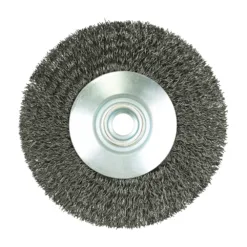 Suitable for use with angle grinders. The crimped wire is ideal for lightly removing loose paint, rust or dirt without scarring the base material.
