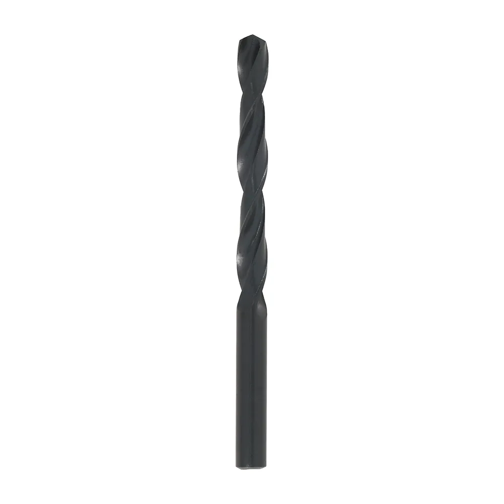 An economic HSS drill used for drilling all non-alloy materials. The 135° split point prevents the bit from drifting and enables faster penetration. High Speed Steel (HSS).Black oxide finish.Roll forged.Manufactured to DIN 338.Dimensionally precise.High performance 135° split point tip eradicates the need to pre-drill/centre punch.