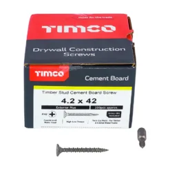 Specifically designed for fixing cement board to timber and thin sheet metal (max. 0.6mm). Self countersinking head for a secure and flush finish. Twin-cut point with a hi-low thread. Exterior grade coating for superior corrosion resistance in damp or corrosive environments, when compared to standard fasteners.Organic plating withstands 1,500 hours in salt spray test.Fixing to timber and thin sheet metal (max. 0.6mm).Twin-cut for rapid “pick-up” and reduce torque.Ribs under the head for improved countersinking.