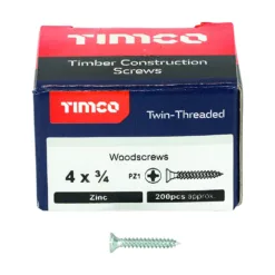Twin-Threaded Countersunk Silver Woodscrews – 4 x 3/4